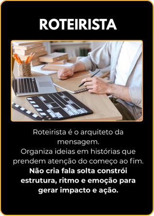 Tenho visão comercial. Pensamento funil, percepção de valor e escala. Trabalho com estrutura roteiro, oferta, prova, tráfego e conversão porque marketing que não vende é só entretenimento caro.